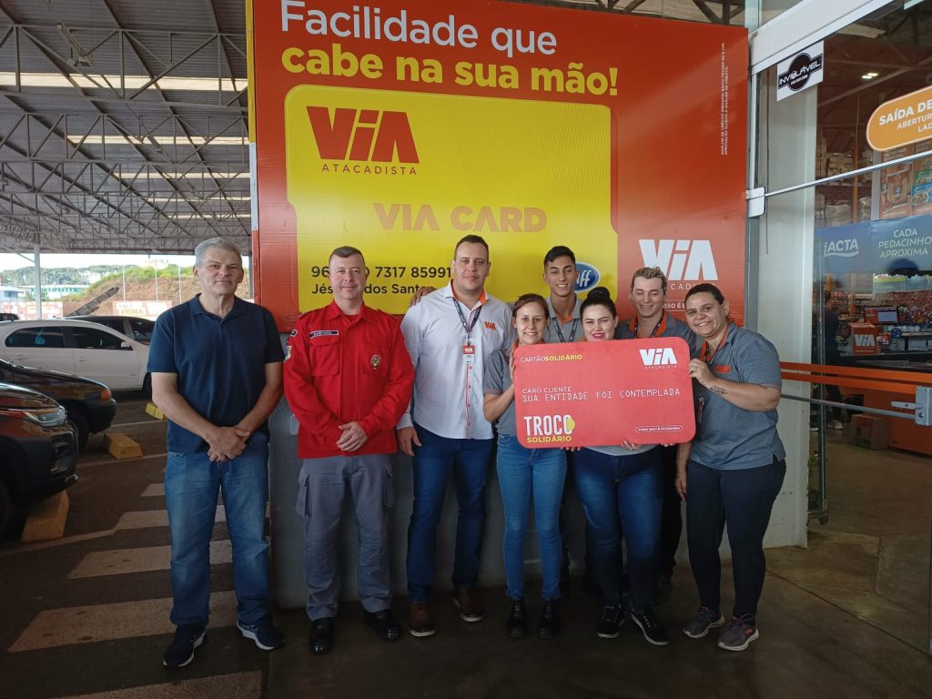 O Comando e a Diretoria do Corpo de Bombeiros Voluntários de Caçador agradecem ao Supermercado Via Atacadista, bem como todo seu quadro de colaboradores pela doação referente à “Campanha do Troco Solidário”, no valor de R$ 5.109,75 (Cinco mil e cento e nove reais e setenta e cinco centavos).